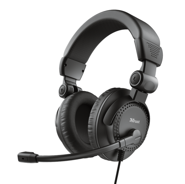 Comfortable foldable over-ear PC headset with large, soft pads and an adjustable headband